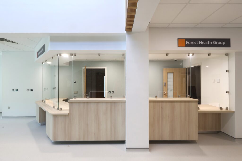 Stirling Medical delivered a full FF&E and bespoke joinery package for the Bracknell Forest Centre for Health—a purpose-built, three-storey healthcare facility providing 2,323 sqm of clinical space.