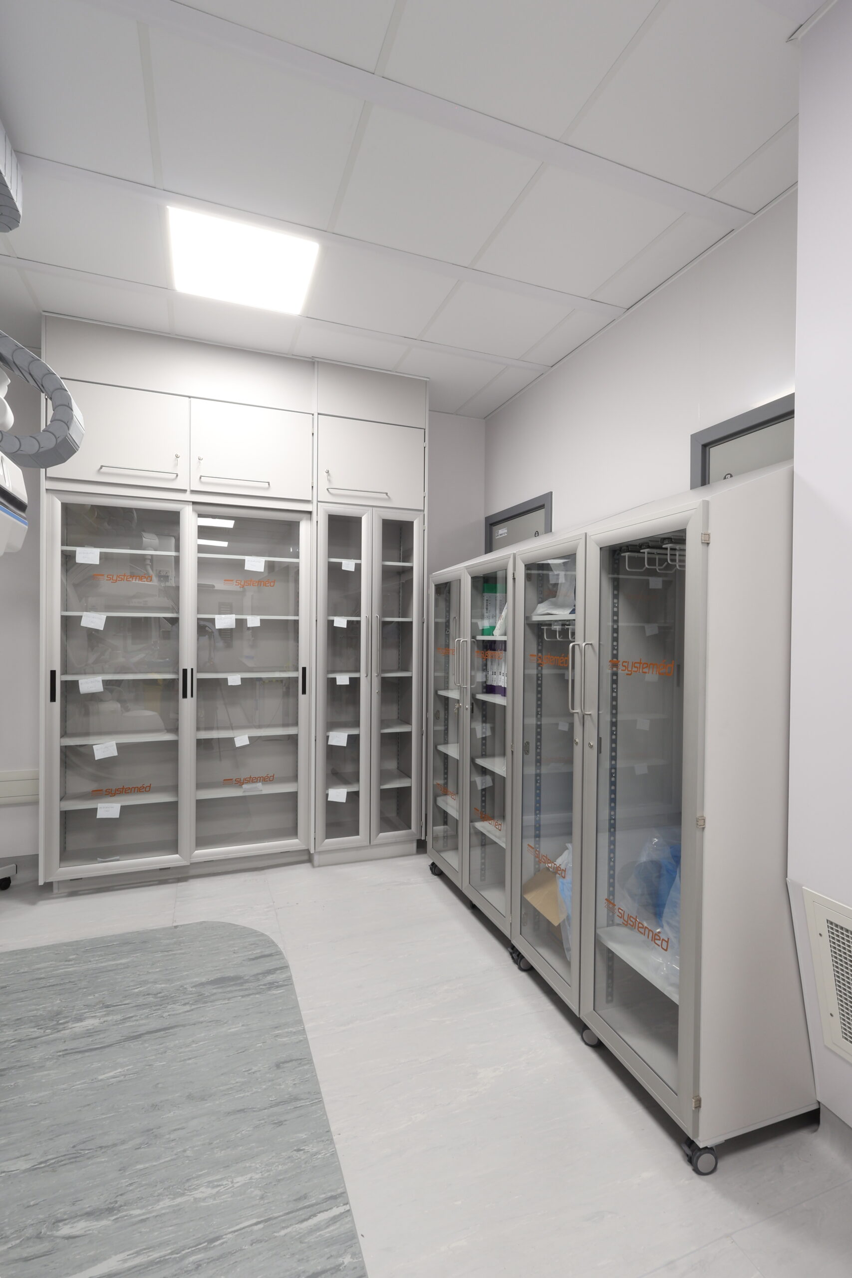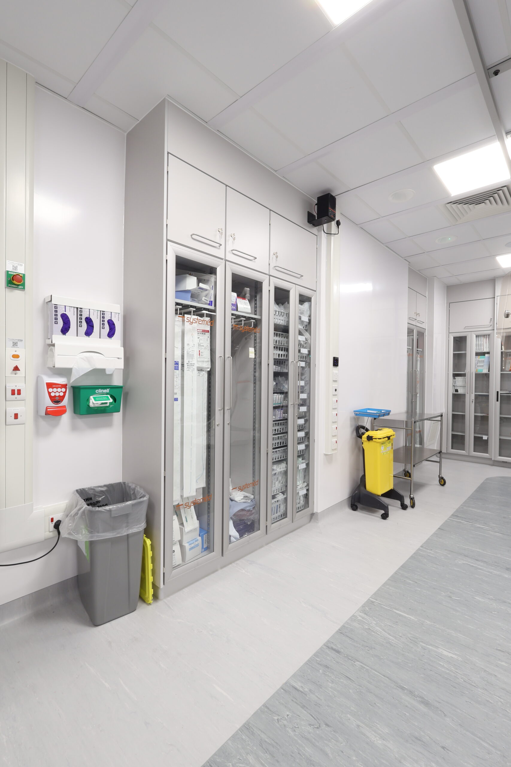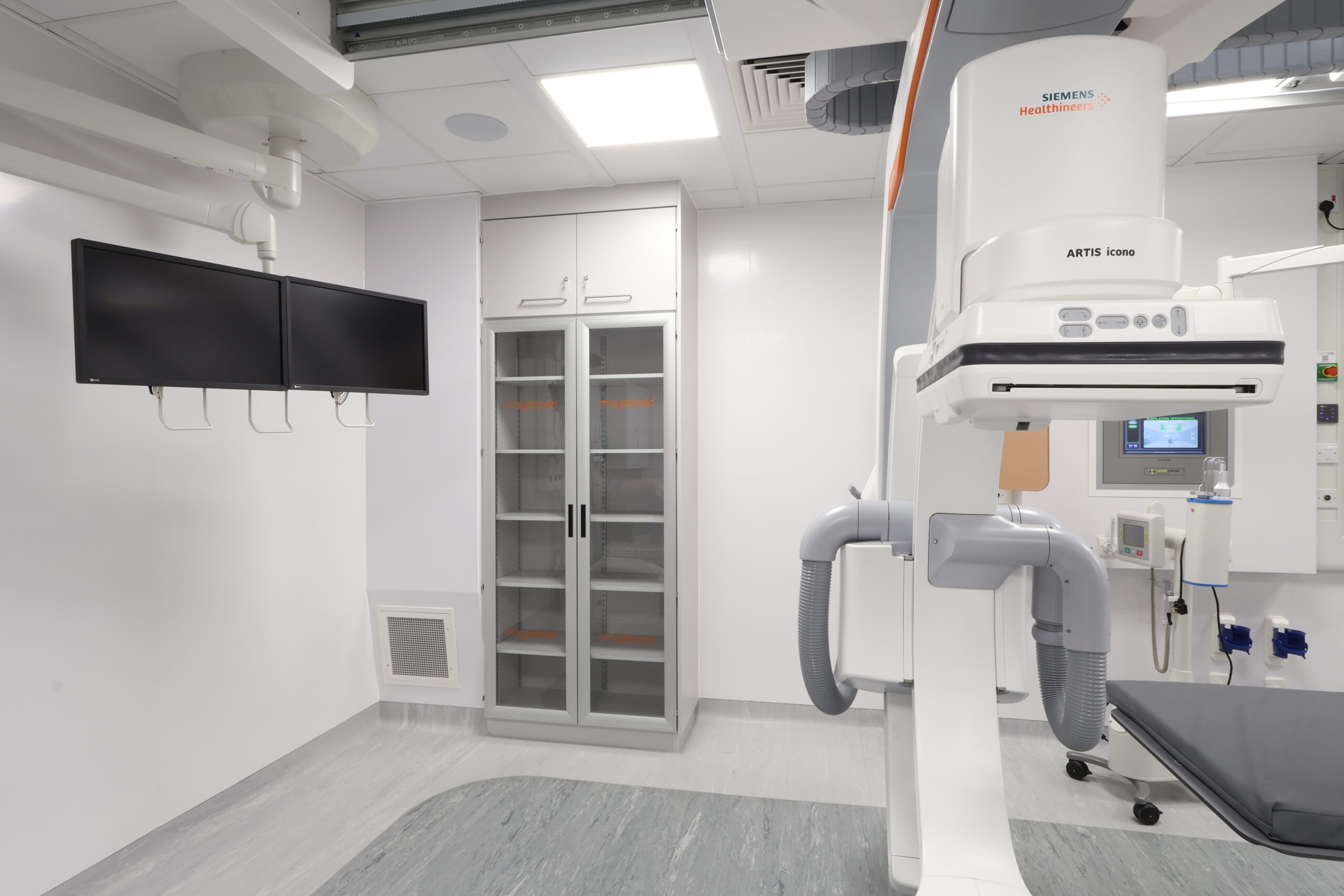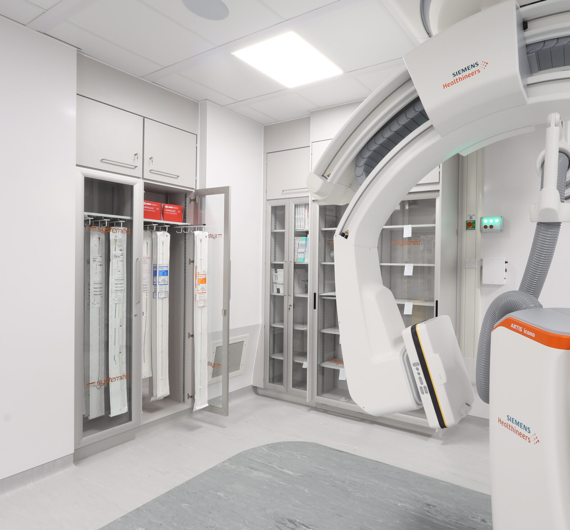 The solution included integrated modular storage, workstations and glass sliding door systems, helping to optimise space, maintain visibility and support efficient clinical workflows within a live hospital environment. The refurbished IR suite now provides a modern, functional and robust setting, designed to meet the demanding requirements of interventional procedures while supporting improved staff efficiency and patient care.