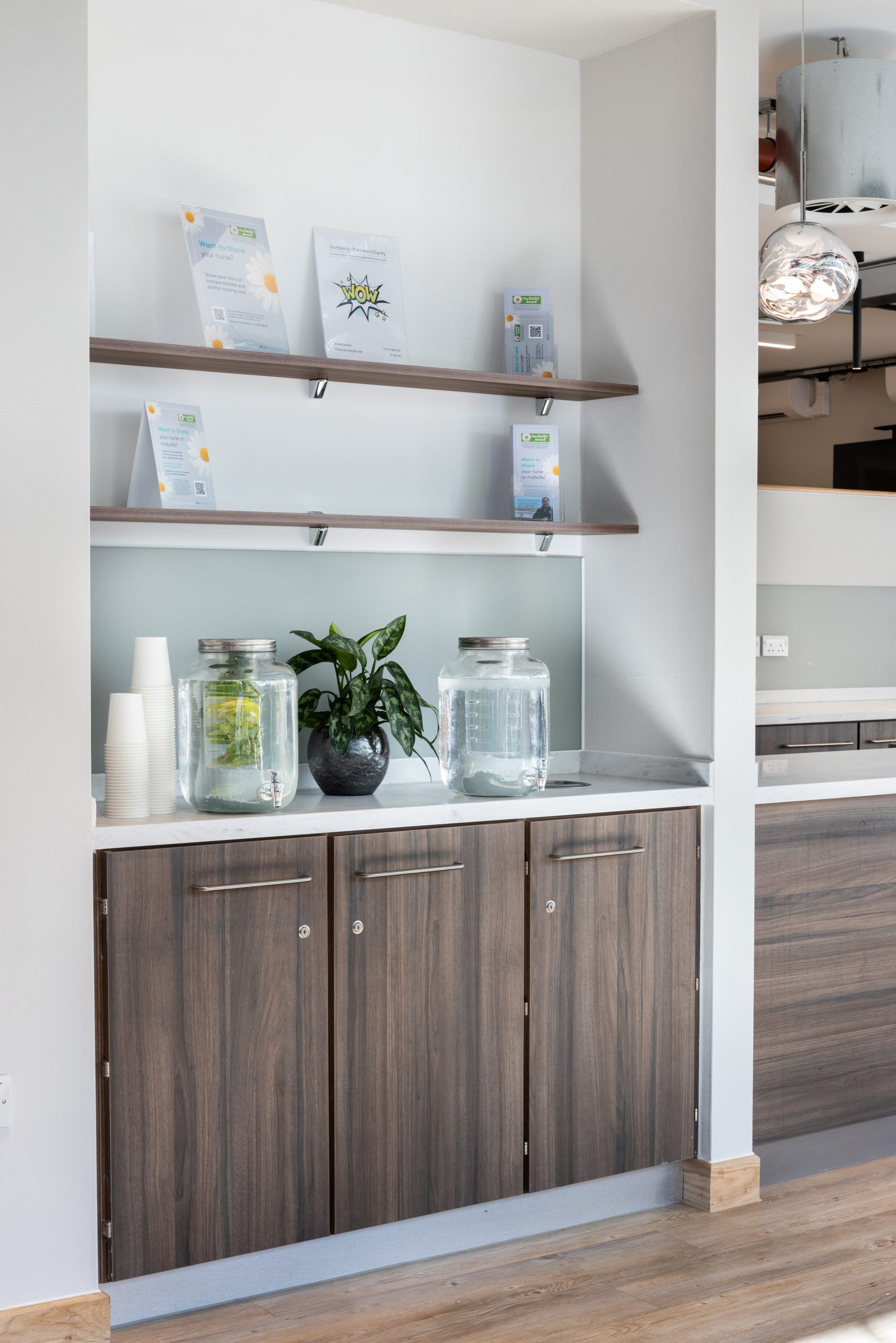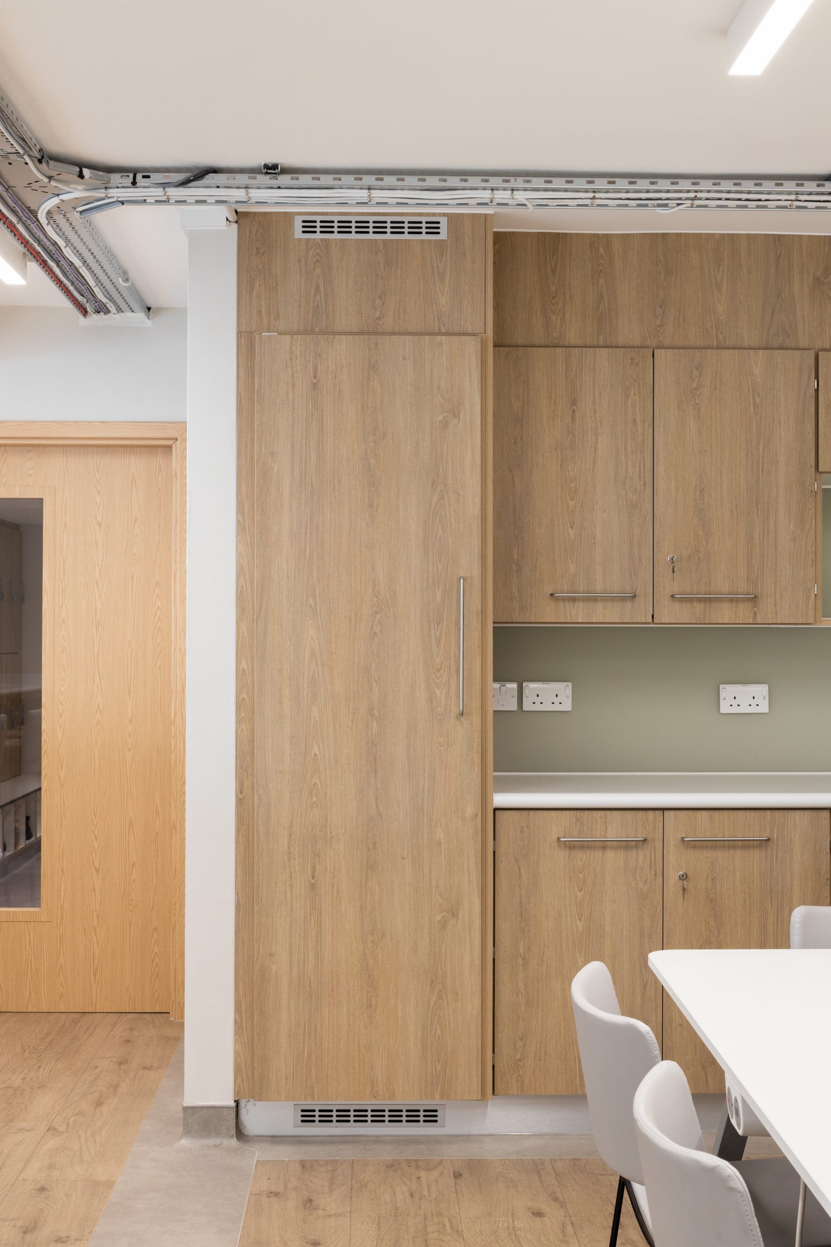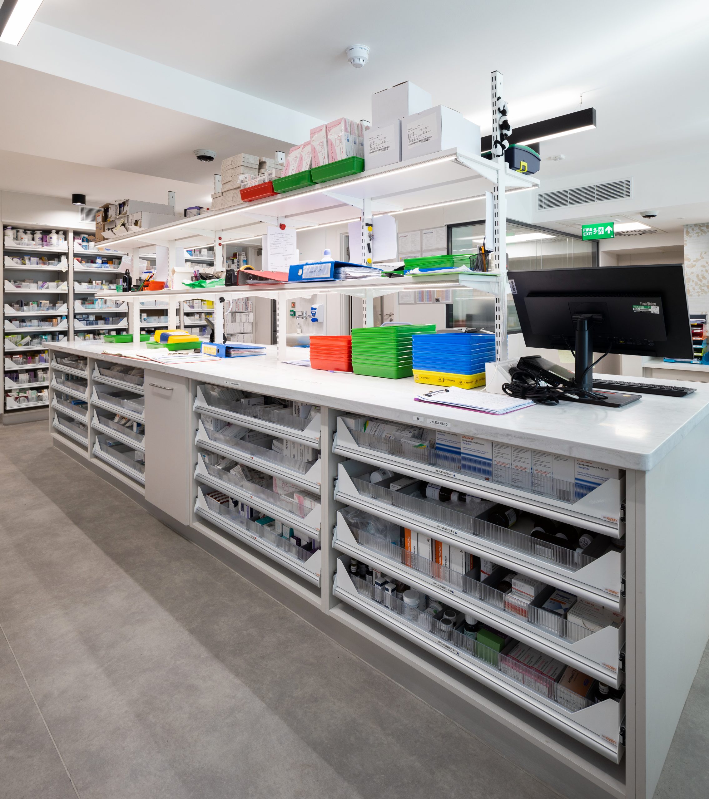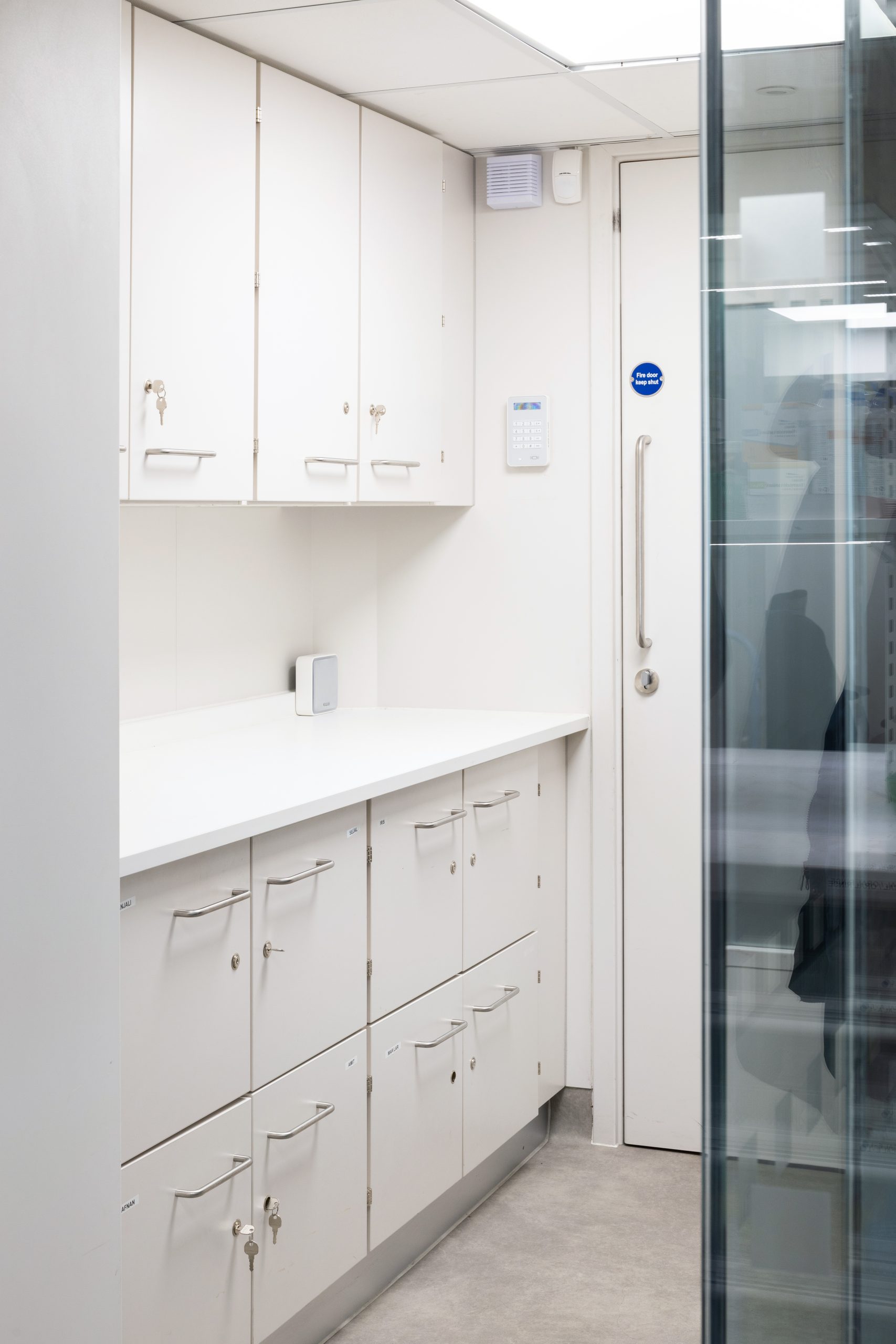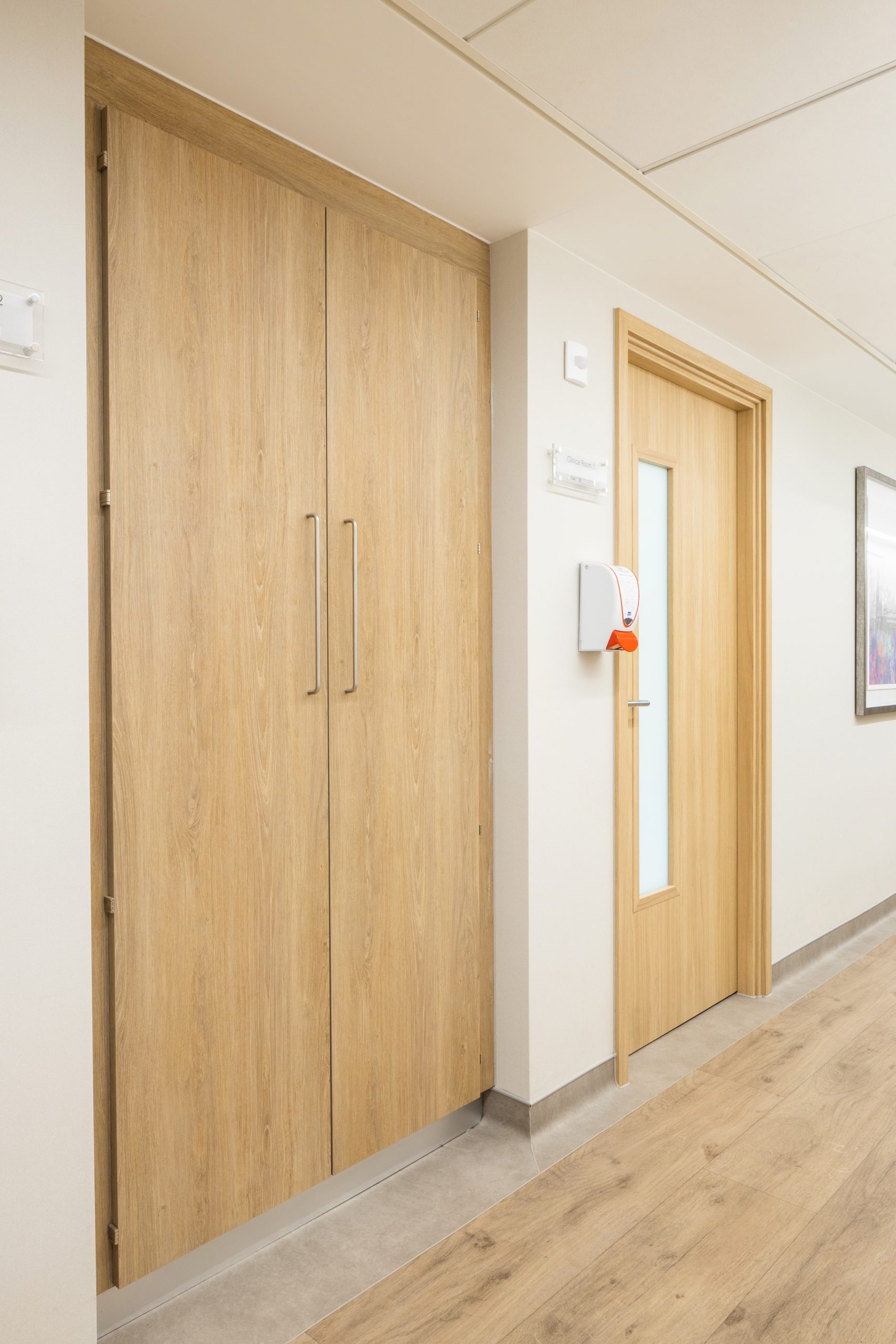 Typically a private healthcare project requires attention to detail, high quality finishes and working to tight timescales in sometimes difficult offloading and parking conditions. This project included all of these features and involved supply and fit of clinical cabinetry, benching and worktops to a new Pharmacy, bespoke bookcase units to the Reception areas, Theatre lockers with low level benching, Beverage area units and IPS walling and Sanitary fittings to WCs.