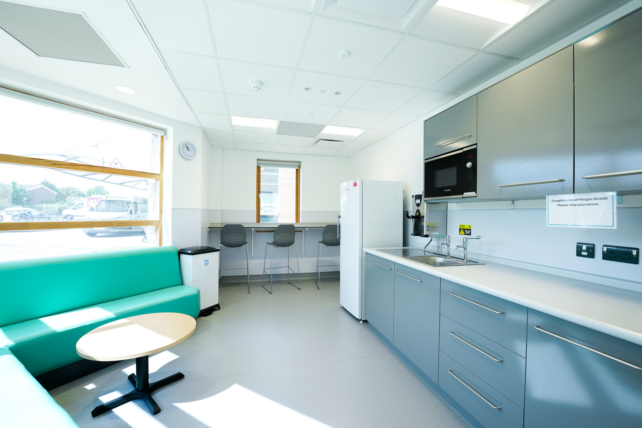 We were delighted to support the transformation of the newly-completed Same Day Emergency Care (SDEC) unit at University Hospitals Sussex NHS Foundation Trust’s St Richard’s Hospital in Chichester (2025). Delivered in just 14 weeks and procured via SCAPE, the £6 million refurbishment converted a former acute medical unit into a modern facility with an open-plan waiting area, triage and procedure rooms and 18 chair or trolley bays.